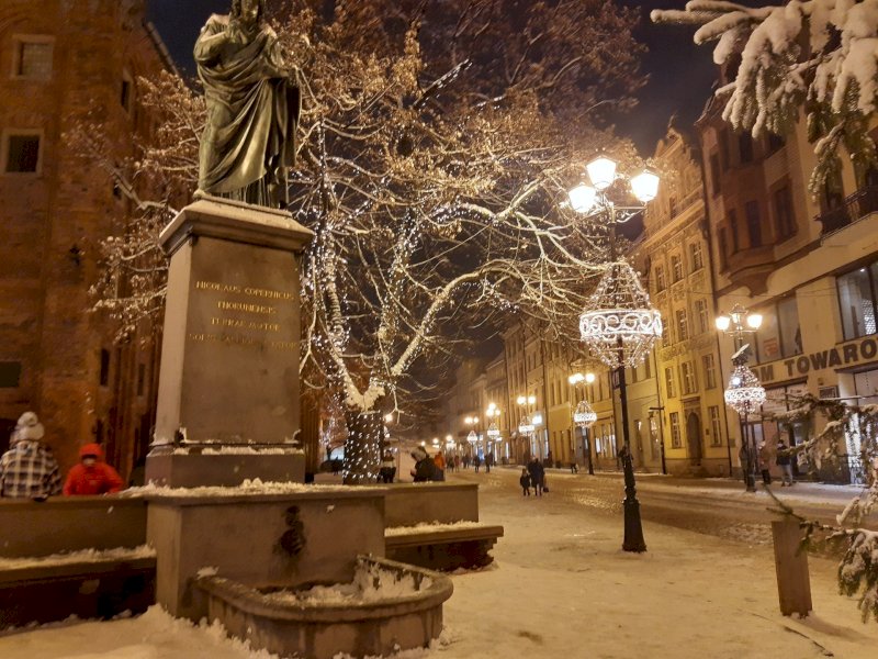 Zwiedzanie Torunia - mury obronne, baszty, Krzywa Wieża, Dom Mikołaja Kopernika (bez zwiedzania wnętrz), Rynek Staromiejski, katedra św. Janów, pomnik Kopernika, pomnik skrzypka Flisaka i żab, czas na zakup tradycyjnych toruńskich pierników. Seans astronomiczny w Planetarium o tematyce świątecznej (Renifer Kometa lub Gwiazda Betlejemska) oraz warsztaty wypieku pierników.